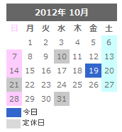 カレンダーに定休日や特別日などを設定し表示することができます。