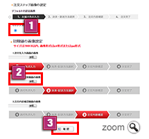 「ファイルを選択」ボタンから画像を登録することができます。 - 3ご注文の流れ、注文ステップ画像を設定できます。 ※以下のような別ウィンドウが開きます。