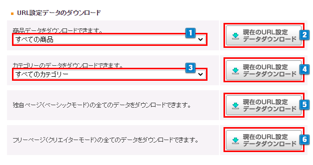 - 4クリックすると選択したURL設定データをダウンロードできます。