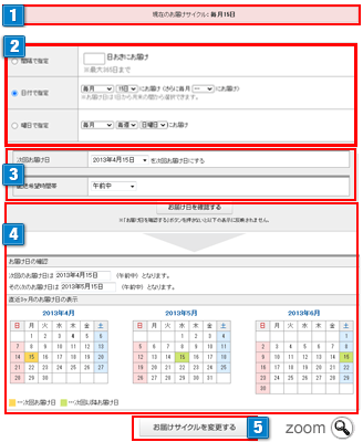 変更をご希望の場合は別の決済方法へご変更いただくか、定期注文を解約の上、再度ご注文いただく必要がございます。 - 13「サイクル変更」をクリックすると